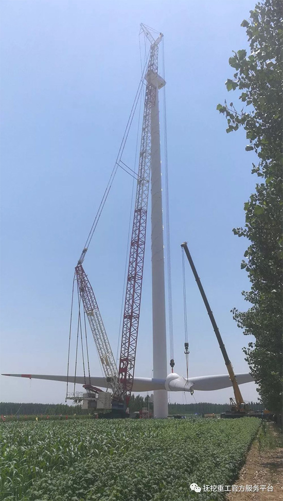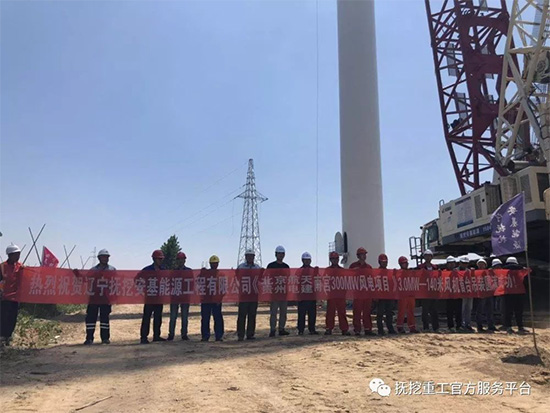 遼寧撫挖安基能源工程有限公司在北京航天·貴州電建 南宮300MW風(fēng)電場項目施工中,于2019年7月3日在河北省邢臺市南宮市完成首臺單機(jī)容量3.0MW、輪轂中心高度104米的風(fēng)機(jī)安裝,這既是我公司首臺高度更高 、重量更大 的3.0MW-140米風(fēng)機(jī)安裝,也是目前為止風(fēng)機(jī)廠家-金風(fēng)科技的 3.0MW-140米柔塔風(fēng)機(jī)批量吊裝施工的開始,為遼寧撫挖安基能源工程有限公司在風(fēng)電施工領(lǐng)域填寫輝煌的一筆。